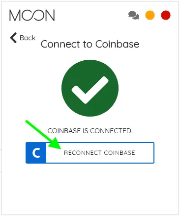 4. Select "Reconnect Coinbase". If you haven't connected Coinbase to Moon yet, select "Connect Coinbase".